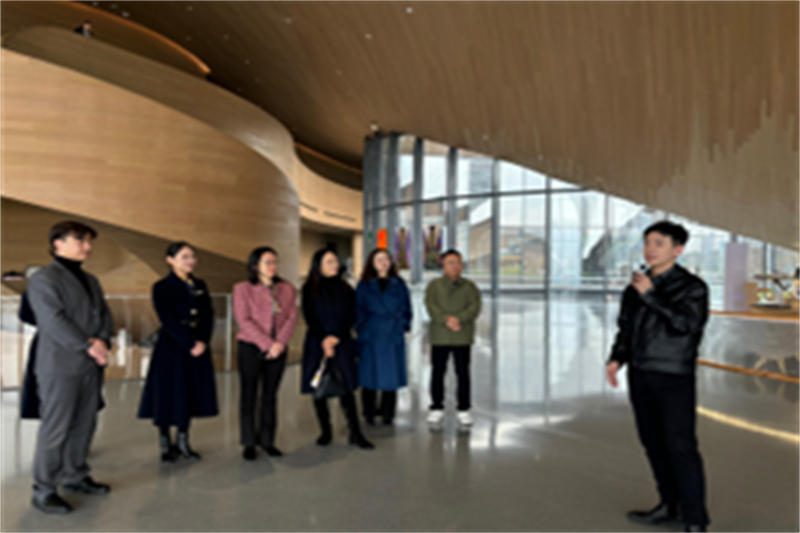 11 月 22 日上午,传媒学院党委书记刘道莉,院长助理董攀,播音与主持艺术系副主任刘婷婷及播音与主持艺术系两名优秀毕业生代表前往成都天府艺术公园与中海物业管理有限公司开展访企拓岗活动。此活动旨在加强学院与企业之间的交流合作,进一步提升学生的就业质量与实践能力培养,搭建职场通道。
