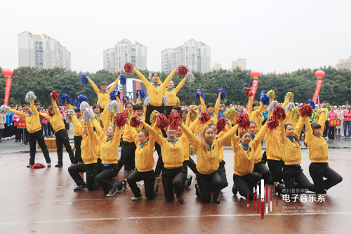 在入场式的风采展示中,电子音乐系师生以饱满的热情,昂扬的斗志展示了我系风采。在各系入场式表演中,我系展示的表演音乐最为突出。这两分钟的音乐片段由我系青年教师韩彦敏老师和沈诚老师亲自操刀制作完成。震撼、动感、时尚的电声加上《为祖国歌唱》的歌曲主题,音乐刚放出来其高质量的音乐效果就引起全场尖叫,在学生们青春洋溢的啦啦操表演中,全场都沸腾了起来。电子音乐系用高质量的音乐展示了我系在音乐制作方面的水平和特色,充分展现电子音乐系师生的新精神、新面貌、新风采,也是对我系师生精神风貌、运动水平、组织纪律的一次大检阅。