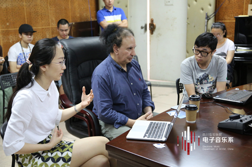 此次来访,Stolet教授举办了四场大师班,为电子音乐系研究生和本科生指导作品。两场讲座分别于2015年6月9日下午2:30和6月10日上午9:00在电子音乐实验室举行,全系师生参加了讲座,Stolet教授的助教王驰担任翻译。6月9日下午的讲座,Stolet教授以“我的声音理念”为主题向全系师生分享了自己创作电子音乐的声音理念。互动电子音乐的概念和特征。在讲座第二阶段,Stolet教授介绍了“互动电子音乐”的理解和这类艺术形态的特点。6月10日上午,以“时间、空间、表情和Kyma”为主题的讲座在电子音乐实验室举行。Stolet教授向同学们讲授了如何利用声音设计系统Kyma强大功能进行电子音乐创作的技法。