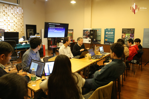 2015年11月10日上午,莱孝之教授与电子音乐系参加本次教学活动的本科生、硕士研究生和青年教师进行了长达两个小时的座谈,在座谈中与师生进行有关教学内容和教学方法的探讨,了解我系师生在电子音乐创作以及电子音乐创作平台和软件学习与研究当中的现状和需求,对于师生普遍存在的困惑以及关心的问题进行了深入而有效的讨论。既解决了部分师生的困扰很久的学习问题,又给师生的学习和研究给出了有效的建议和意见,并根据座谈的结果对不同师生的个别课时间和内容进行了修订。