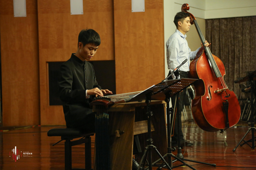 研究生潘闽亚的两部作品均采用民族乐器与电子音乐相结合的方式来构思创作的。其中《鱼儿的独白》是为琵琶与现场实时电子音乐而作,水中的鱼儿虽并不能发声,作者却通过电子技术手段对琵琶进行实时的声音变形,不仅为传统乐器增添了新型的呈现方式,也使得民族乐器通过电子技术手段展现了更丰富多样的音响,虚实之间相结合,为听众描绘了一幅灵动而淡雅的中国水墨画卷。
