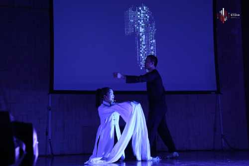 研究生王楚翔的《六戏》是以max/msp为电子音乐技术平台专为川剧青衣旦和现场的舞蹈、视频相结合而创作的多媒体作品。作品中青衣旦所演唱的都是川剧的传统唱段,唱段中受众者的内心世界则是通过舞者的肢体语言来体现的,表演者的灵心对话更是跨越了时空。这种演绎了不同的艺术形式和媒介之下的戏剧,也更加容易被观者理解和欣赏。