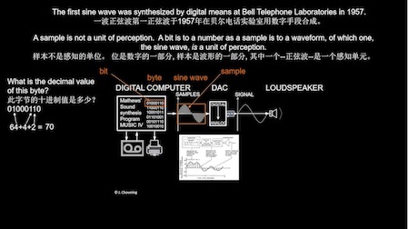 在讲座中,乔宁教授首先介绍了声音的数字化原理、采样定理、模数转换器与数模转换器的基本原理,然后分析了数字电子计算机与二进制之间的关系,以及电子计算机的发展。说明电子音乐的产生是计算机技术与采样技术结合的历史必然,并且简要回顾电子音乐和计算机音乐的发展历程。乔宁教授指出,科技进步给音乐发展带来深刻影响,与科技相结合形成的计算机音乐语言、计算机技术在当代音乐中广泛运用,并具有重要作用。