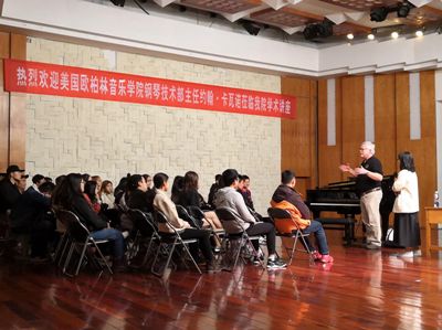 2018年11月9日,美国欧柏林音乐学院钢琴技术部主任约翰-卡瓦诺老师,在四川音乐学校小音乐厅举行了关于三角钢琴整音、修理、调整等内容的专题讲座。约翰老师详细的向师生们介绍了关于钢琴调律中常见维修问题,逐一的耐心解答大家的问题。乐器工程系钢琴调律教研室全体教师与钢琴调律专业全体学生参加了此次讲座,教师们针对在钢琴调律教学内容、钢琴结构、钢琴选材等方面进行了长时间的交流探讨。 通过本次讲座以及师生互动,老师同学们更深入的了解了钢琴调律相关理论和技术,丰富了专业知识,拓展了学术视野,为以后的本科学习提供了专业性的指导。
