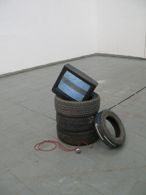3月26日,由德国歌德学院主办的『庆典——自由的1/6注解』(第七回)多媒介现场艺术项目在成都西村艺术空间举行,参展艺术家有白小墨(中国),蔡青(德国),清水慧美(日本),李琨(中国),霜田诚二(日本),周斌(中国)。电子音乐系教师白小墨的新作品《书读19英寸》(声音与影像装置+表演) 在本次艺术活动中成功展演。 《书读19英寸》由一台旧的19英寸电视机、一只老式麦克风、一本《万物简史》、若干轮胎、以及在后台运行的MaxMSP和Jitter程序组成。作者通过朗读、撕碎、重新排列、再朗读等表演,解构文本涵义,使之成为支离破碎的不连续片段,经过现场同步录音和再回放之后,文本原有的表达涵义消失殆尽,取而代之的是完整的不确定性。作品的影像部分主要材料使用了噪声,并通过麦克风捕捉到的声音与屏幕上的噪声产生互动,噪点时而变小,时而变大。当音量达到最大时,整个屏幕被一个以最大程度放大的噪点填满,呈现出五彩颜色。 作为艺术实践,电子音乐系本科3年级学生范弘硕和吴一凡以艺术家助手的身份参加了本次艺术活动,协助白小墨调试程序、设置并完成作品。