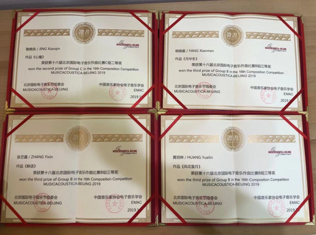 2019年10月22日,第20届北京国际电子音乐节拉开帷幕,本次音乐节由中央音乐学院主办,北京市文化艺术基金和国际电子音乐联合会联办。作为北京市文化艺术基金“品牌演艺”资助项目,北京国际电子音乐节已经成为中国电子音乐最重要学术交流平台之一。据音乐节艺术总监张小夫教授介绍:“2019年北京国际电子音乐节主题为「辐射」,与2018年主题「聚合」相呼应,象征一个时代亮点的聚焦,意在能量的聚集,理念的汇流,智慧的集合,思想的碰撞与创新,将聚合的能量转化,辐射到更广阔的未来空间。” 本届北京国际电子音乐节邀请近百位来自国际、国内电子音乐/计算机音乐/影视音乐/多媒体音乐/音乐与人工智能方面的专家、学者和各高校的师生汇聚北京中央音乐学院。来自世界各地的作曲家与演奏家,共同演绎了60余部各类电子音乐作品,其中33部为中国首演,22部为世界首演,代表着国际电子音乐发展最前沿的最新成果。我院电子音乐系青年教师董轼带队的本科尖子生与研究生参与了音乐节各类活动。 在电子音乐作曲比赛环节,来自国外与国内各省市的专家学者40余人组成了初审与复审团,对180余部电子音乐作品进行了两轮评审与公开点评。我院敖昌群教授、胡晓教授应邀担任决赛评委,参与了比赛终审的现场点评。今年会jinnian官网电子音乐系共有五部作品闯入到了B组(混合类电子音乐)和C组(结合视觉电子音乐)决赛,最终取得一个二等奖,三个三等奖,一个入围奖的佳绩。 B组三等奖:《月华生》(2017级研究生杨晓曼)作品指导:陆敏捷 B组三等奖:《鲸语》(2018级研究生张艺鑫)作品指导:陆敏捷 B组三等奖:《风花雪月》(2018级研究生黄玥琳)作品指导:陆敏捷、张志亮 C组二等奖:《心魔》(2016级研究生敬晓亲)作品指导:胡晓、杨光 C组决赛入围:《OSC》(2019级研究生张钧泓)作品指导:杨万钧 在2019北京国际电子音乐节作曲比赛活动中,川音电子音乐系的师生展示了本专业的风采,获得了国内外专家学者好评。 希望老师与同学们再接再厉,为学院争得更多荣誉!