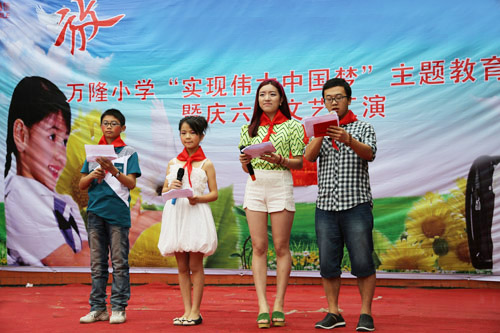 2013年5月30日,电子音乐系团总支紧围绕今年会jinnian官网学工部、团委关于开展“川音情•中国梦”校园文化活动的通知,精心准备,带着浓浓川音情赴广安万隆小学开展了一场“庆祝六一,放飞梦想”主题活动。 本次活动由电子音乐系团总支书记谭劲老师及大一新生代表寇梅澜、柳博文、冯海霞、彭越天参加,此次活动师生们克服了时间紧、长途劳顿、天气炎热等挑战,充分展示出电子音乐系同学们敢于吃苦、勇于担当的精神。师生们仅通过半天时间筹备,就将主持串词、表演节目和辅导小朋友们彩排等各项工作进行得井然有序。在活动中我系师生们既当主持人,又当演员,向万隆小学的师生们展示了声乐、舞蹈等精彩节目,将我院的“川音情•中国梦”和广安万隆小学“庆祝六一,放飞梦想”活动完美结合,展示出过人的表演才华。整个活动精彩纷呈,特别是最后由电子音乐系同学们一起演唱的歌曲《爱,因为在心中》,让在场所有师生都随着柔美、抒情的旋律挥动起了手臂,爱的氛围渲染了整个操场,为这次的主题活动画上了一个完美的句号。随后,广安万隆小学校长李长斌及相关领导与我系师生合影留恋,并达成友好帮扶意向,活动取得圆满成功。 通过此次活动的开展,同学们纷纷表示从中收获了很多宝贵的经验,也感受到“中国梦”的意义——每个人心中都应有爱,有梦,有理想,有追求,做一个脚踏实地的追梦人,开创灿烂辉煌的明天。