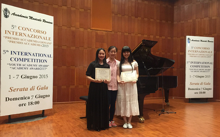 由欧盟委员会主办,罗曼娜音乐学院承办的第五届意大利罗马学院奖国际钢琴比赛于2015年6月1日至7日在罗马举行。在这届罗马学院奖国际钢琴中,吸引了来自俄罗斯、立陶宛、波兰、奥地利、捷克、匈牙利、意大利、中国、斯洛伐克、韩国、法国、德国、克罗地亚、台湾等国家及地区选手参与。我院钢琴系本科一年级学生黄小殊在此次比赛荣获15岁至18岁组第二名,邓汪敏荣获19岁至23岁组优秀奖,在此特向她们及她们的指导教师孙静雅表示祝贺。