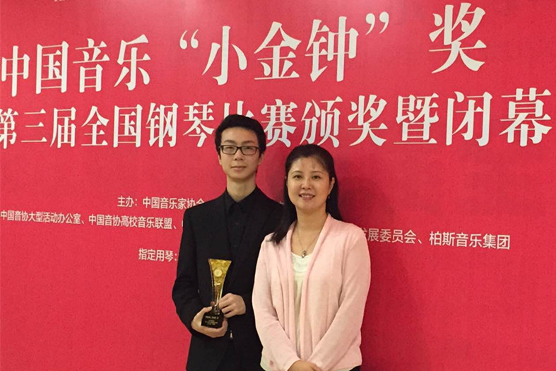 由中国音乐家协会主办,中国最重要的钢琴赛事之一,中国音乐“小金钟”奖,长江钢琴第三届全国钢琴比赛于2015年9月17日至23日在湖北宜昌举行,该项赛事为九大院校的专业钢琴比赛,赛程长,曲目量大,竞争非常激烈。经过初选,第一轮入选48人,进入第二轮半决赛16人,最后进入决赛仅剩6人。我系附中高三年级学生钟航,经过历时七天,三轮竞技的顽强拼搏,最终冲入了决赛,获得了“小金钟”钢琴比赛少年组铜奖,他的指导教师王雁教授,也同时获得由中国音协颁发的优秀指导教师奖。这是四川学生首次在该项赛事中获奖。在此,特向钟航同学及王雁教授表示祝贺!