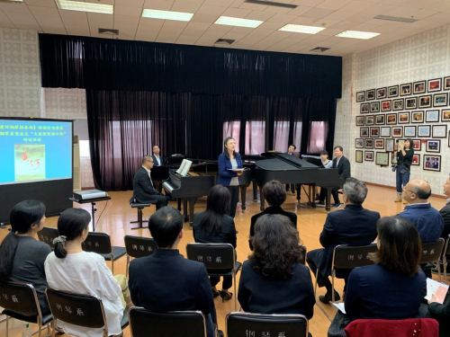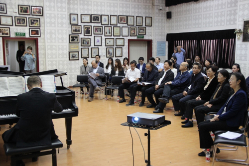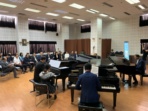 为庆祝新中国成立70周年,结合“不忘初心、牢记使命”主题教育工作,我系党总支10月10日在琴房大楼六楼排练厅开展了主题为“我爱我的祖国”——八手连弹《钢琴协奏曲<黄河>》教研活动。为今年会结合“不忘初心、牢记使命”主题教育开展的“艺术大展演”活动做准备。全系部分党员师生代表和非党教师代表参加了此次的教研活动。 活动中,党总支书记王雁首先围绕活动精神宗旨及中心思想,介绍了对《黄河》协奏曲的研究心得,以及作品的爱国主义情怀,谈了自己的心得体会。教研室主任何沙等四位老师激情弹奏了《黄河》协奏曲片段,参加活动的老师们都深受鼓舞,掌声不断,纷纷表示此次教研活动的选题好,很有意义,很期待看到在“艺术大展演”上的演出。王书记强调,要领悟《钢琴协奏曲<黄河>》所表现的“中华儿女在党的带领下,不屈不挠、团结奋斗并最终夺取胜利”的精神,深刻感悟中华民族历史及中国艺术作品所具有的文化精神内涵,建立起更加坚定的“文化自信”,倡导大家努力发掘和宣传中国钢琴艺术精品,用钢琴奏出具有爱国主义精神的“中国声音”。以“钢琴唱响民族魂”为思路,在专业研究与教学工作中,弘扬、宣传爱国主义和文化自信,积极践行、落实习总书记关于思政教育和爱国主义教育的指示精神。 在教研活动中,恰遇四川省委常委、组织部长王正谱,省委组织部副部长、党建办主任沈晓玲,省委教育工委书记,省教育厅党组书记、厅长李江等一行到学校调研考察。在学院周书记、刘院长,侯书记等的陪同下,专门来到了我系参观调研,王部长对我系将主题教育工作和教研工作的紧密结合高度赞扬,给予了极大的肯定。学院领导也充分肯定了我系党总支的工作。
