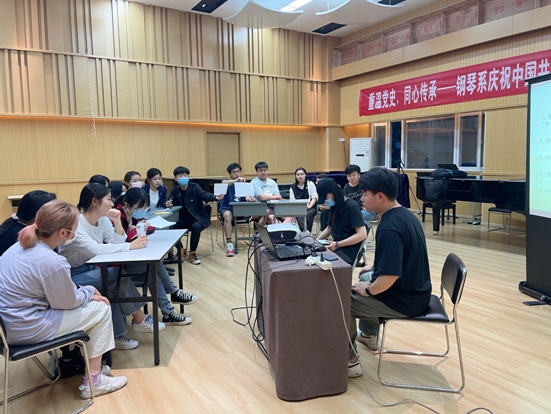 为进一步响应党史学习号召,增强大家对党史知识的了解和学习,提高大学生学习党史的热情,由钢琴系团总支举办的“庆祝中国共产党成立100周年党史知识竞赛”于2021年5月26日晚19点在琴房大楼六楼排练厅拉开帷幕。参加本次比赛的有钢琴系学生会全体成员,各年级团支部书记以及部分优秀团员代表。钢琴系团总支书记伍丹主持知识竞赛。