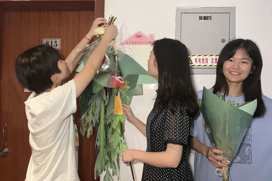 活动结束后,文云英书记一行深入学生宿舍,关心同学们节日期间学习生活安排情况,为同学们送上粽子、盐蛋、香囊等节日礼品,把师生们亲手制作的艾草花束挂在寝室门口,祝福同学们学业进步、前程似锦。