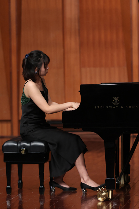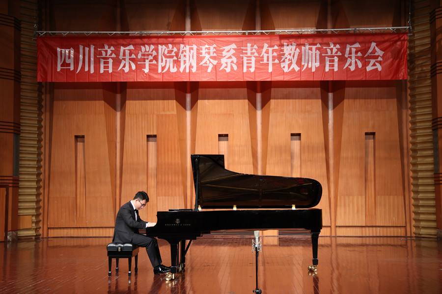 留美青年教师董珉君,带来了勃拉姆斯《C大调第一钢琴奏鸣曲》作品第1号。他饱满激情的演奏将这首作品中古典主义创作风格与浪漫主义创新情怀完美交织,仿佛是一种灵魂的对话,传递给现场的每一位倾听者。留法青年教师王圣极具艺术魅力演奏向观众展现了拉威尔纤细敏锐且情感丰富的音乐世界,作品层次丰富具有极强的审美张力,指落琴鸣似婉转低语,琴声绕梁若生生不息。留德青年教师黄雪则将热情洋溢充满自由奔放与浪漫主义的西班牙音乐“搬”到了现场。通过活泼与优雅的音乐表现、华丽与绚烂的技术演绎,将西班牙民族的音乐元素与浪漫主义体现的淋漓尽致。