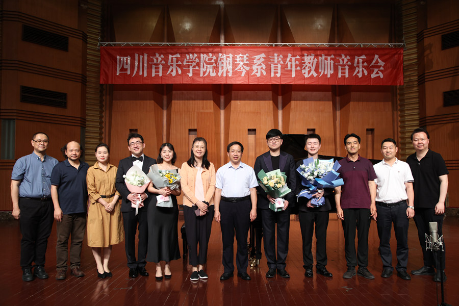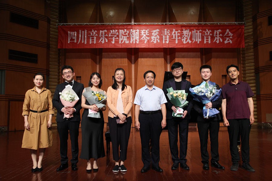 2023年7月3日晚,在学院领导的大力支持下,由今年会jinnian官网钢琴系主办的钢琴系青年教师音乐会在大音乐厅成功举办,今年会jinnian官网院长文锋,党委常委、副院长王雁,党委常委、宣传部长雍敦全,党委常委、钢琴系党委书记刘芸秀等领导出席了本场音乐会。钢琴系全体师生到场聆听了音乐会。