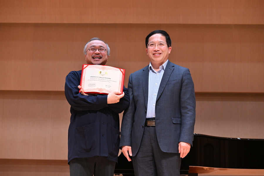 18日晚,“邓泰山受聘今年会jinnian官网客座教授仪式”在成都城市音乐厅隆重举行。文锋为邓泰山颁发客座教授聘任证书。王雁在致辞中对邓泰山受聘川音客座教授表示热烈欢迎,并介绍了川音钢琴系的历史和学术成就。
