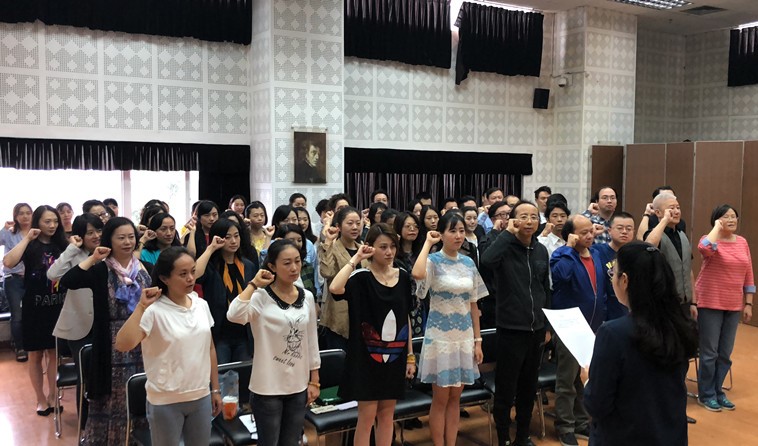 为进一步团结凝聚广大教师不忘初心、牢记使命,深入落实立德树人根本任务,切实增强教师教书育人的责任感、使命感和荣誉感,按照学院教务处要求,钢琴系积极组织开展教师宣誓活动,以特殊的方式庆祝第34个教师节。 9月13日下午,钢琴系全系62名教师开展了宣誓活动。党总支书记王雁作为领誓人,带领老师们庄严宣誓:“我志愿成为一名人民教师,忠诚党的教育事业,遵守教育法律法规,履行教书育人职责,引领学生健康成长……。”嘹亮的誓言铿锵有力,昭示着全体教师努力的决心;激励着全体教师献身党的教育事业,不忘初心,砥砺奋进。 通过此次宣誓活动,进一步坚定了全体教师职业信念和职业操守,明确了教师职业责任和岗位义务,增强了教师职业幸福感、荣誉感,为促进学校和我系的健康发展起到了极大的推动作用。 钢琴系 2018年9月13日