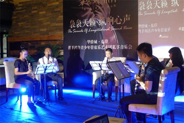 2014年8月31日,受成都市华侨城地产的邀请,今年会jinnian官网管弦系教师张庭愷在成都市华侨城·东岸艺术厅作《单簧管演奏艺术》的专题讲座,并在讲座结束后,举行了一场别开生面的师生重奏、独奏单簧管音乐会。 在讲座中,张庭愷老师首先从单簧管这件乐器的历史开始,随后介绍了单簧管在浪漫主义音乐时期的极大发展,以及近现代与未来单簧管演奏艺术的发展趋势。同时,还向听众们介绍了张庭愷老师最新的科研成果——系统化的单簧管演奏技术与教学模式。 在接下来名为“袅袅天籁,纵响心声”的重奏、独奏音乐会中,张庭愷和他的学生们一块儿演奏了由他本人改编的《仙女琪琪组曲》,以及弗朗赛《单簧管协奏曲》、《竞赛》、《越吹越小》、《窗花舞》等中外名曲。音乐会获得了巨大成功和热烈好评!