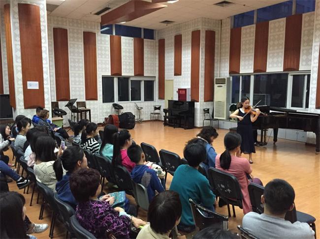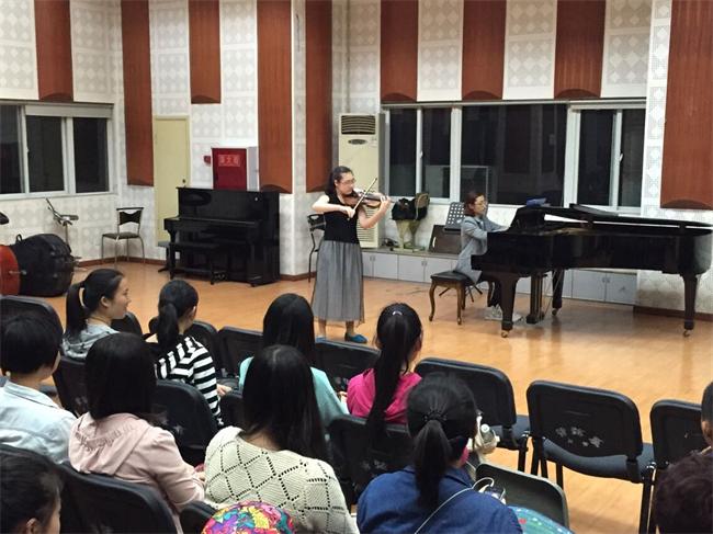 新学期的第一次学生音乐会,不到七点已经有学生和家长陆陆续续的来了,四排厅显得比平时排练的时候更加热闹,时不时还能听见走廊里学生对自己的乐器进行音乐会前的试音工作。黑色的长裙,优雅的领结,让这个初夏静谧的夜也有了颜色。 19点30分,音乐会正式开始,学生主持人刘博晓短暂报幕之后我们今天的主角一个个登场了,台下的观众屏气凝神,不时发出一阵阵掌声。 场上的一个个小独奏者,让他们的音乐慢慢的流入了我们耳朵,偶尔也会有学生在上台时深深吸一口气,为自己鼓劲,对啊,音乐会的目的就在于此,如同海报上写的一样--我们拥有这片天空。我们一起享受这个夜晚的音乐流转。