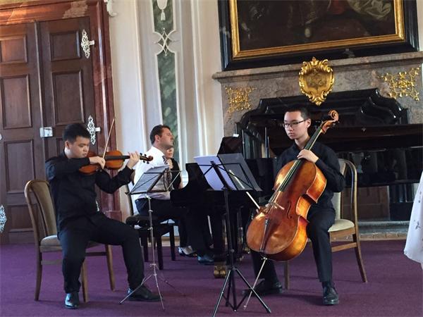 2015年7月25日至8月9日,在管弦系主任李开祥教授的带领和组织下,我系青年教师李倩、刘璐璐、赵明玮,小提琴艺术研究院青彦言、川音交响乐团张丽佳几位老师以及我系研究生、本科、附中学生一行22人参加了捷克布拉格2015 年第22届AMEROPA音乐节。音乐节期间进行了大师班课、室内乐教学,老师和同学们排练、演出了室内乐及交响乐作品音乐会,演出获得强烈反响和一致好评。