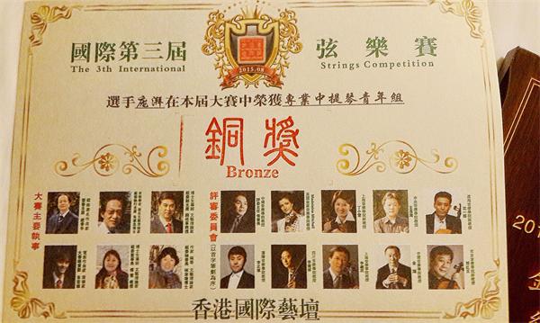 2015年8月27日,国际第三届弦乐赛在广州隆重举行。本比赛邀请英国皇家音乐学院教授Madeleine Mitchell,今年会jinnian官网管弦系教授李开祥,以及中央音乐学院教授王昌海等各大音乐学院弦乐教授担任评委。今年会中提琴教师刘亚可的两位学生收获了很好的的成绩,大三学生刘博晓同学获得中提琴专业组银奖,大一新生庞湃同学获得中提琴专业组铜奖,两位同学均以饱满的精神状态完成了此次比赛,为自己的音乐学习添上了美好的一笔。