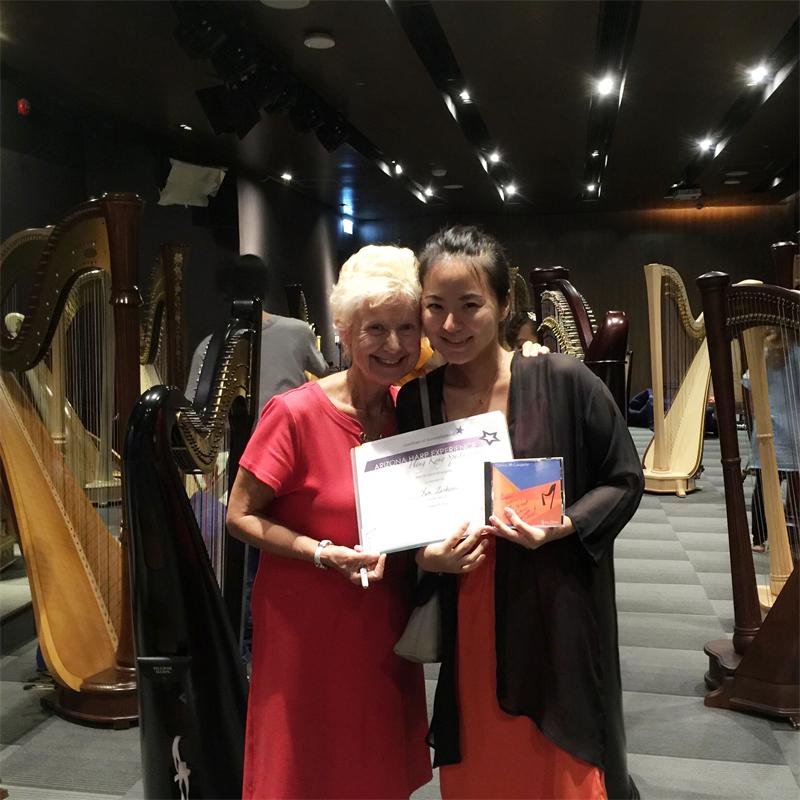 2015年8月4-12日,由美国亚利桑那大学音乐学院的竖琴教授Dr.Carrol Mclaughlin 在香港成功举办竖琴音乐节. 今年会jinnian官网竖琴教师徐子珊作为中国四川地区唯一代表,参加了这次艺术节并获得证书。 在艺术节中,有多项内容与板块,徐子珊参与了竖琴大师课、竖琴演奏和聆听演讲等。其中竖琴教授Dr.Carrol讲解的竖琴音乐治疗,使本人深受启发、受益匪浅。徐子珊通过上大师课与教授面对面交流获得更多更新的国际前沿竖琴咨询,为推动我院的竖琴学科的长足发展做出努力。同时与来自美国、香港和其他地区的竖琴同僚们交流学习,收获颇丰、受益良多。