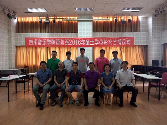2016年6月12日上午,管弦系管乐教研室在学院琴房大楼二楼多功能厅,为管乐硕士毕业生徐翔、陈绪坤、陈叶丹、邵金强、杨雅婷举行了“2016届硕士研究生(管乐)毕业论文答辩会”。答辩委员会主席由谢岳教授担任,答辩委员会委员分别由杨华玉教授、杨熔副教授、何辉副教授、张文坤副教授、宋世彬副教授担任;答辩委员会秘书由张庭愷老师担任。
