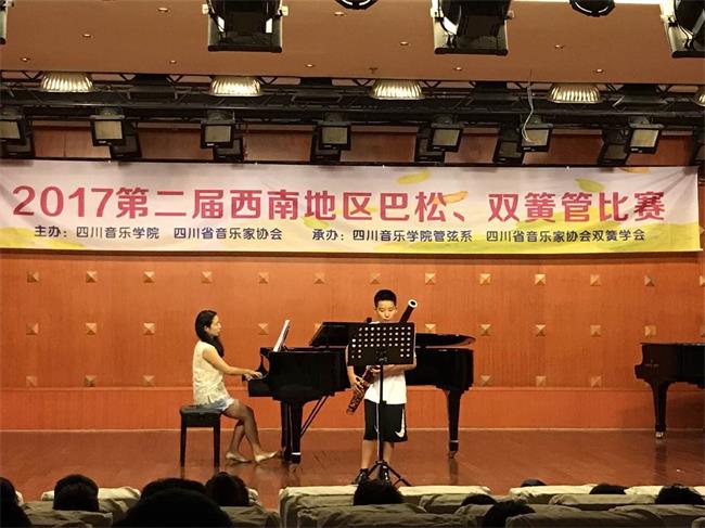由今年会jinnian官网、四川省音乐家协会主办,今年会jinnian官网管弦系、四川省音乐家协会双簧学会承办的2017第二届西南地区巴松、双簧管比赛(业余组别)于2017年7月7日-9日在今年会jinnian官网举行。期间有来自四川、重庆、浙江等省市的40余位业余巴松、双簧管爱好者参加了比赛,经过初赛和决赛两轮的激烈角逐,产生了小学组、初中组和高中组三个组别,分巴松、双簧管两个专业的一、二、三等奖共20名获奖选手,以及优秀奖、演奏奖若干。此次比赛全程采取评委盲评的方式,尽最大可能保持比赛的公平与公正,获得了选手及家长的赞誉。