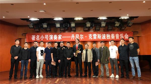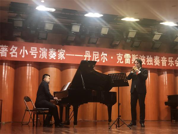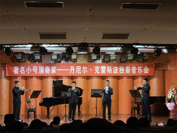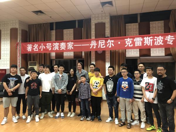 丹尼尔·克雷斯波,世界铜管协会小号系的成员。布非(Buffet)和杜威兹(Dowids)签约小号艺术家,阿根廷布宜诺斯艾利斯科隆爱乐乐团小号首席,布宜诺斯艾利斯弗朗兹·李斯特音乐学院“阿根廷铜管学院”的创始人及教授。亚克雷斯波铜管学院德国施瓦比施霍尔分校小号教授,乌拉圭蒙得维分校小号教授。 5月11日,受我系铜管教研室邀请,丹尼尔来我系讲学并献上一场精彩的演出,让小号专业的同学和老师们受益良多。