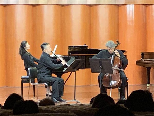 5月22日,我国著名单簧管演奏家、教育家,浙江音乐学院管弦系主任董徳君教授,浙江音乐学院外籍大提琴专家Alexander Suleiman(苏莱曼)教授在管弦系讲学。二位教授与浙江音乐学院一行共13名教师于5月23日在学院聂耳音乐厅举办了专场交流音乐会。