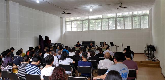 我系于2019年9月3日下午3:30分在北校区101教室召开全系教师大会,参加会议的有系主任蔡宇、党总支副书记罗平、主任助理宋世彬及全系教职员工。 会上,蔡主任对新学期的教学工作进行了安排布置,各教研室负责人分别对新学期的教学工作、学术交流、对外演出等活动逐一进行汇报。蔡主任要求:本学期教师外出讲学、参加艺术周等交流活动原则上不予准假,因上课周数较少,要求任课教师对学生的专业课程的教学工作保质保量完成。罗书记通报了迎新、新生军训等事宜,要求老师们结合我系全员管理学生的要求,继续做好学生的思想引领工作,时刻关心关注学生的思想动态和身心健康,争做“四有”好教师。