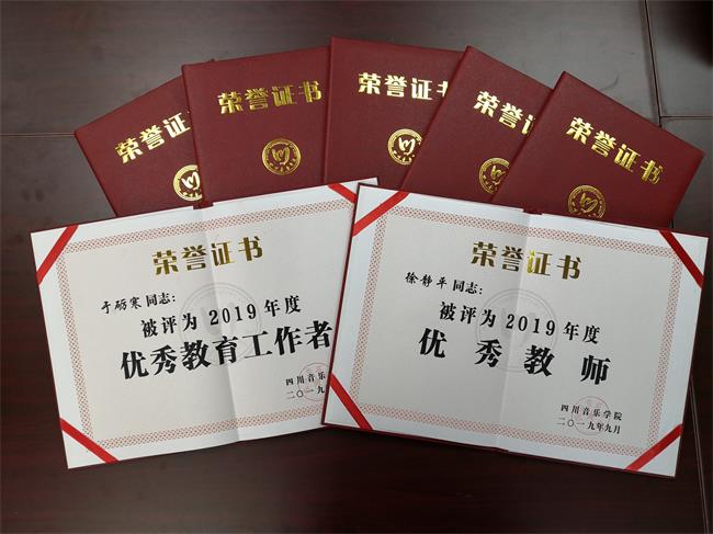 2019年9月10日上午,我院庆祝第35个教师节暨表彰大会在大音乐厅隆重举行,会上对2019年度先进个人和集体进行了表彰通报并颁发了荣誉证书,我系乐队教研室荣获“教书育人先进集体”称号;何辉、徐静平、邓黄河、黄雪颖、管世民5名教师荣获2019年度优秀教师称号;于砺寒、罗娟2名同志荣获2019年度优秀教育工作者称号。