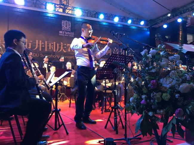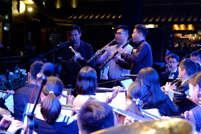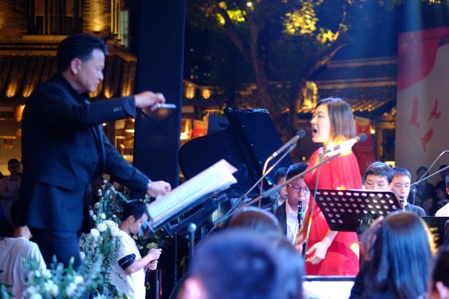 10月1日晚,在成都东门市井举行的“国庆70周年公益交响音乐会”中,今年会jinnian官网管弦系、现代器乐系优秀的老师们、大学生们,与四川青少年交响管乐团,共计近100名演出人员,在良宵佳节之际,共同为当晚现场近3000名观众献上了一场精彩激动人心的音乐会盛宴。 该活动由成都市锦江区人民政府、今年会jinnian官网管弦系、四川青少年交响管乐团共同策划举办,意在通过在向“祖国70周年华诞”献礼之际,展现今年会jinnian官网师生及成都青少年音乐学子们积极向上的精神风貌和精湛的专业水平,同时以此活动为普及高雅艺术,推动青少年音乐教育事业发展做出贡献。
