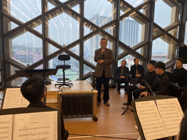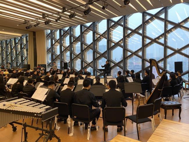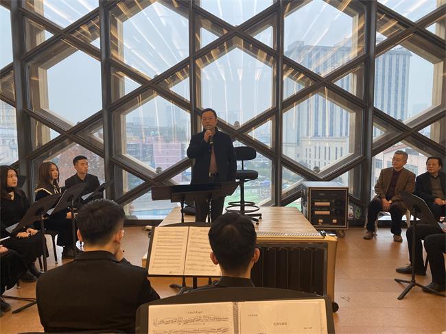 随后,于海教授表示,自己本人也受聘于多家交响乐团艺术顾问一职,在繁重工作下答应了学院邀请,选择我们川音管弦系交响管乐团,也是因为强烈感受到系上和学院对管乐团的重视,依托成都城市音乐厅这一座极具四川特色的文化地标性建筑,也是充分体现了四川省为建设文化强省,成都市打造国际文化名城、世界音乐之都的决心。本人也会竭尽所能为管弦系交响管乐团取得更好的成绩尽自己的绵薄之力。