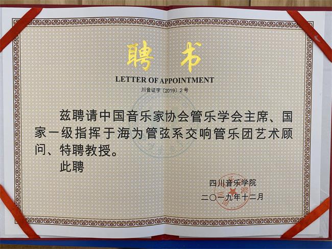管弦系聘任国家一级指挥于海为交响管乐团艺术顾问