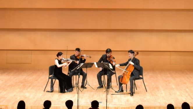 12月16日晚,享誉中外的中央音乐学院琥珀弦乐四重奏在成都城市音乐厅-室内乐厅举办了专场音乐会,这也是成都城市音乐厅-室内乐厅的首场公开演出。琥珀四重奏在本场音乐会采用了讲演结合的方式,精彩演绎了巴托克的《罗马尼亚民间舞曲》、张朝的《图腾》及舒伯特的《d小调弦乐四重奏“死神与少女”》,赢得了现场观众经久不息的掌声。