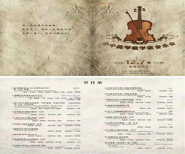 2020年12月7日我系在星海音乐厅举办了2020小、中提琴教学音乐会。本次音乐会由学生包括附中和本科学生参加,演奏了巴洛克、古典、浪漫、现代各时期的经典作品。教学班音乐会为学生们增强舞台实践能力提供了很好的平台,获得师生一致好评!