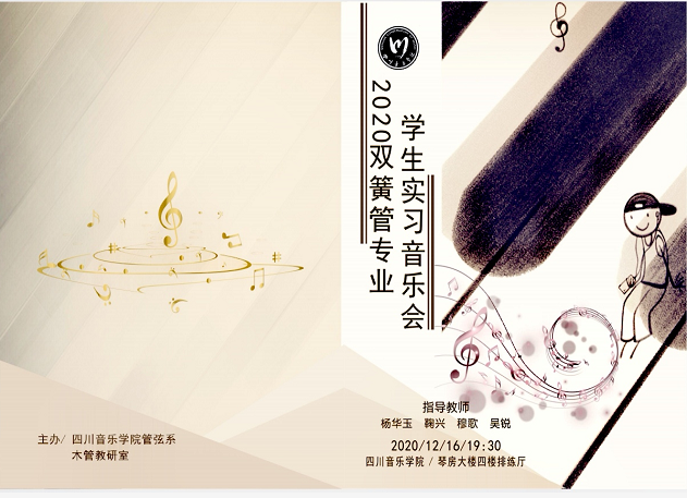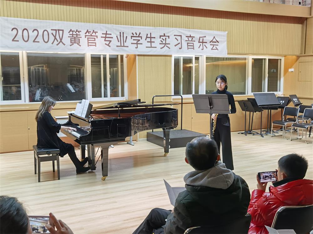 2020年12月16日我系在琴房大楼四楼排练厅举办了“2020双簧管专业学生实习音乐会”。 参与本次音乐会的学生涵盖附中和本科,演奏曲目囊括了巴洛克、古典、浪漫以及现代时期的经典作品。 音乐会获得师生一致好评,为学生们增强艺术实践能力提供了很好的平台。