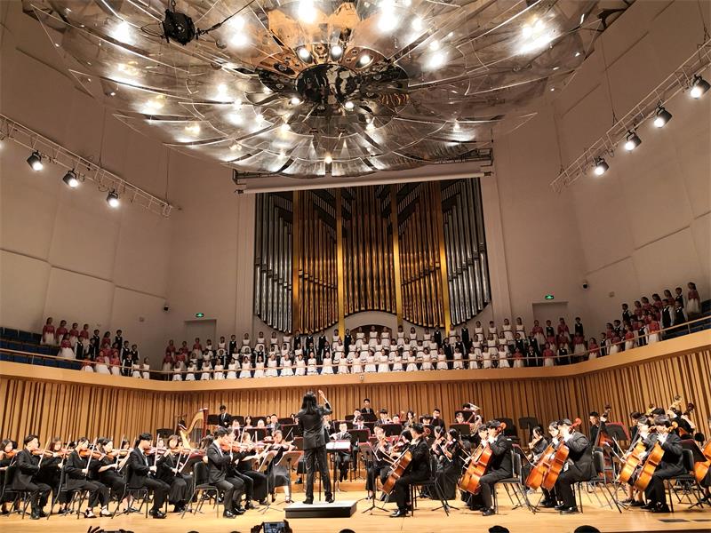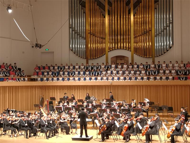 6月1日19:30,在成都城市音乐厅,我系青年交响乐团携手四川青少年交响乐团、成都童声合唱团在“中国少年先锋队队歌”的嘹亮歌声中、在令人振奋的鼓点声中奏响了“我们是共产主义接班人” 儿童节专场音乐会的序幕。