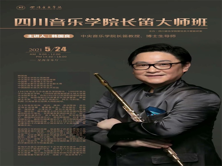 1.2021年5月24日,管弦系木管教研室邀请中央音乐学院长笛教授,博士生导师韩国良先生于我院星海音乐厅举办大师班,管弦系本科及附中多位长笛学生受到韩国良教授的指导。