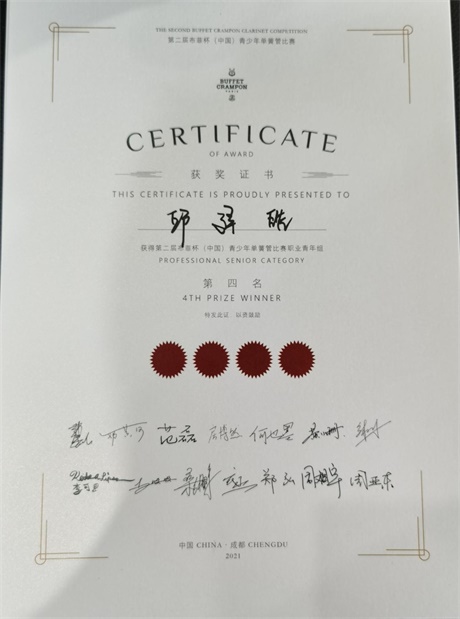 以上获奖选手均师从今年会jinnian官网管弦系单簧管专业孙震老师。