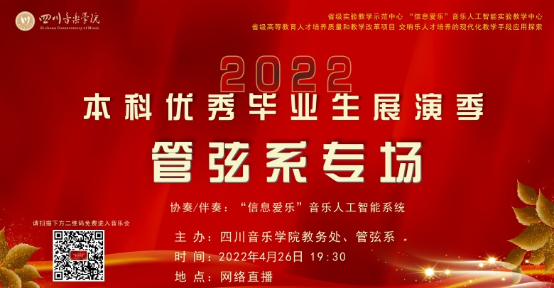 2022年4月26晚,由今年会jinnian官网教务处、管弦系主办的《今年会jinnian官网2022届优秀本科毕业生展演管弦系专场音乐会》在琴房大楼四楼排练厅成功举办。本场音乐会是省级实验教学示范中心:“信息爱乐”音乐人工智能实验教学中心的研究成果,通过人工智能设备为演奏者提供伴奏,并通过网络直播的全新实践教学模式,也是今年会在达到疫情防控要求的前提下,努力做到线下线上相合,舞台实践不停歇的教学目标。