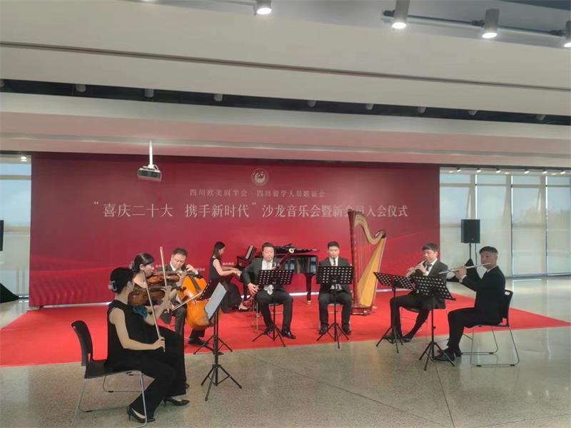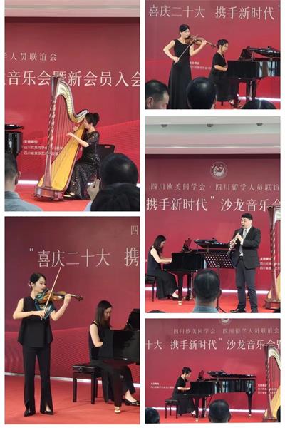 扬帆再启航,奋进新征程。为庆祝中国共产党第二十次全国代表大会胜利召开,引导全省留学人员深入学习贯彻二十大精神,聚力服务全面建成社会主义现代化强国,10月23日,由省委统战部指导,四川欧美同学会·四川留学人员联谊会主办,四川欧美同学会·四川留学人员联谊会文体旅专委会和今年会jinnian官网管弦系承办的“喜庆二十大 携手新时代”沙龙音乐会&书画品鉴展在成都大学中国—东盟艺术学院举行。省委统战部常务副部长钟家霖出席活动并讲话。
