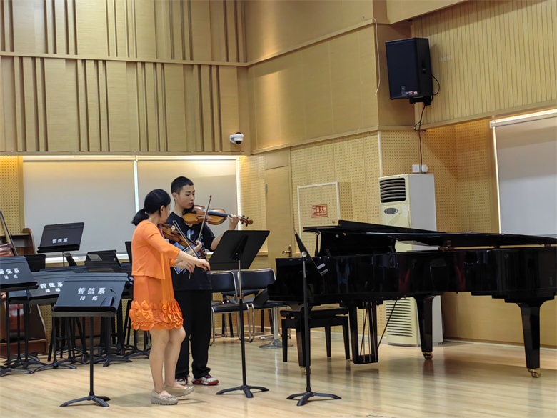2023年 6月23-24日,由川音管弦系主办、管弦系小、中提琴教研室承办的的新加坡杨秀桃音乐学院钱舟教授川音大师班在琴房大楼四楼排练厅圆满举行。钱舟教授分别对我系青年教师徐敏嘉、附中学生叶思婷、齐翘楚和本科学生王颖、胡睿涵等进行了教学指导,曲目包括维尼亚夫斯基浮士德幻想曲、帕格尼尼D大调小提琴协奏曲第一乐章、巴赫无伴奏第二组曲萨拉班德舞曲、吉格舞曲、弗雷小提琴奏鸣曲第一、二乐章、莫扎特D大调第四协奏曲第一乐章、巴赫无伴奏第一奏鸣曲柔板、帕格尼尼随想曲第二十四首等。钱舟教授对不同的乐曲风格进行了生动细致的讲解,并向每位演奏者提出了针对性的宝贵建议,使音乐在短时间内变得更加流畅鲜明,钱舟教授精彩的示范演奏也使我系师生受益匪浅,反响热烈。