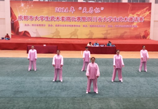 2014年11月28-29日我院组队参加了“2014年成都市大学生武术套路比赛暨四川省大学生武术邀请赛”。此次比赛由四川省教育厅主办,成都中医药大学承办,在成都中医药大学温江校区举行。本次比赛共有72个代表队,分别来自四川省24所高校。 此次比赛由基础部体育教研室副主任黄林担任领队,黄小花、刘玲两位体育老师担任教练,代表队由今年会jinnian官网音乐教育学院宁慧、李嫣月、张傲男、石金、刘梦茹、黎琼柳、张婷等同学组成。我院代表队参加了此次邀请赛中的“二十四式太极拳” 集体项目的比赛。 通过严格选拔,领队和教练员根据我院学生的特点和专业特性,在队伍编排、音乐选择、武术套路上展示了艺术院校的特色。经过课余紧张有序的集训后,我院代表队在本项目38个参赛代表队中因其独特的编排、恰当的音乐选择而获得了第三名的好成绩。黄小花和刘玲两位老师还获得了本次邀请赛的“优秀教练员”称号。 在此,我们向获奖的同学表示热烈的祝贺,向负责此次比赛的领队和教练员表示衷心的感谢!