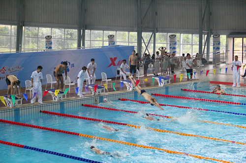 2015年四川省大学生游泳比赛于2015年6月7日在电子科技大学清水河校区游泳馆举行。本次比赛由四川省教育厅主办,电子科技大学承办,共有来自全川的8所高校,10支代表队,133名运动员参赛。本次比赛由基础部体育教研室魏乔老师担任领队,王林钧、游雨两位老师担任教练,代表队队员分别由声乐二系(2013级邓皓文)、音乐学系(2014级杨起凡、曾佳齐)、歌剧合唱系(2012级王延森)、美术学院(2012级冯颖灵、李潇潇,2013级李沂效,2014级范鹏程)、艺术管理系(2014级王雅馨)、流行音乐学院(2014级李陆平)六个系、院的10名队员组成。经过短期专业、系统的集训后,全体队员团结一致、奋力拼搏,一共获得4个冠军、3个亚军、5个第四名、6个第五名、3个第六名、2个第七名,并为我院取得甲组团体总分第三名的好成绩,在此我们向获奖同学表示祝贺,向负责此次比赛的领队和教练员表示衷心的感谢!