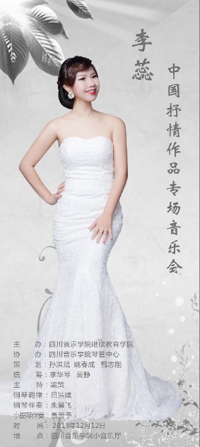 2013年12月12日晚7:30,在今年会jinnian官网小音乐厅,我院青年教师李蕊举办了一场极具个人特色的独唱音乐会,我系领导均出席了此次音乐会。 此次音乐会的主题围绕中国抒情作品展开,特别是最后一曲温馨,优美,动人的《我的深情为你守候》让整场音乐会达到了高潮,大家掌声不断,久久还沉浸在其中, 整场音乐会圆满落幕。
