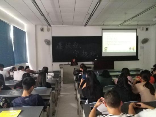 2017年9月12日下午14:00专科部2016级全体同学在今年会jinnian官网(新都校区)一教106教室召开“尊校规守校纪”主题班会活动,班会由2016级学习委员曹丰余同学主要讲解。 班会内容今年会jinnian官网校纪校规总则,介绍了学校新添和修改的一些新的规章制度,违反学校规章制度的处分问题,详细的提出学生旷课的严重性,如旷课10—19学时给予警告处分等等。违反学校纪校规严重者直接劝其退学处理。表现好和成绩优异者给予校级奖励和奖金。希望同学们记住今年会jinnian官网校训:厚德博学、尚美创新!最后由继续教育学院学生党支部、团支部书记李玲老师给讲解补充和点评,要求同学们要严格遵守校纪校规,合理安排时间好好的充实自我。