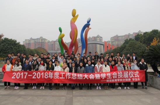 继续教育学院分团委学生会于2017年12月12日13:30在今年会jinnian官网(新都校区)行政楼317会议室召开了“2017-2018年度工作总结大会暨分团委学生会换届仪式”。参会人员有继续教育学院党总支书记甄志刚、学院学生党部支书记李玲、思想政治辅导员段舒、赵凤飞和学生会全体成员。大会由2016级钢琴表演赵妍婷主持。本次换届大会的主要内容是对上届学生工作的表彰与感谢以及对本届工作的希冀和对成员的鼓励。