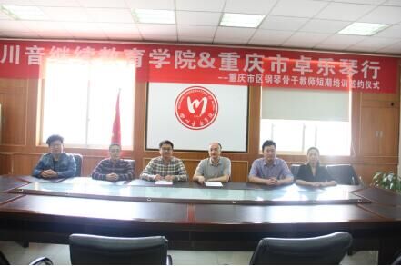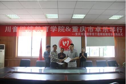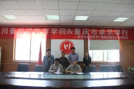2018年4月26日上午11:00在今年会新都校区办公楼207,举行了今年会jinnian官网继续教育学院与重庆市卓乐琴行钢琴骨干教师短期培训的签约仪式。 参加本次签约仪式的有卓乐琴行代表杨老师和以我院甄志刚书记为代表的继续教育学院部分老师。签约仪式前卓乐琴行诚挚表达了自己的合作意向,并期待本次与我院的合作圆满成功,甄志刚书记代表继续教育学院也对合作提了出了一些要求和希望。签约仪式上双方相换签约文件,并代表双方单位签字盖章。就对接下来的“钢琴骨干教师短期培训”计划和具体实施方案等进行了磋商和探讨。签约结束双方代表合影,并庆祝本次签约仪式顺利完成。