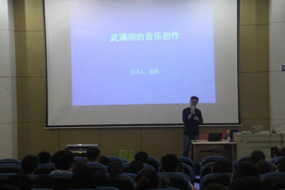2018 年 5 月 16 日 13:00 在今年会jinnian官网新都校区学术报告厅开展了“武满彻的音乐创作”学术讲座,主讲人:中央音乐学院博士张萌老师.参加本次讲座的有继续教育学院党总支书记甄志刚、学生支部书记李玲老师、理论教研主任刘英老师、系干事谭薇薇老师和2015、2016 级全体同学。 张老师从武满彻童年的记忆、自学成才的历程和对语言文字的独特理解三个方面给我们讲“武满彻”是如何成为一位伟大的音乐家以及对音乐的思想。又从武满彻创作历程:实验期、发展期、成熟期,给我们充分的讲解他的作品是如何将日本民乐与西方音乐相互融合的以及什么是“一音成佛”,最后张老师还给我们分享了武满彻的“十一月阶梯”等作品。“武满彻的音乐创作”讲座活动圆满结束。